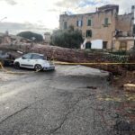 Cade un grosso pino in via Guglielmotti, paura alla Garbatella