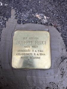 Una mattinata all’insegna della memoria in via Guglielmo Massaia, nel cuore della Garbatella dove, in presenza di due classi delle scuole medie Moscati e Macinghi Strozzi, sono state installate due nuove pietre d’inciampo al civico 22 e 65, dedicate al ricordo di Libero De Angelis e Giuseppe Felici, giovani partigiani uccisi dai soldati tedeschi durante la Resistenza.