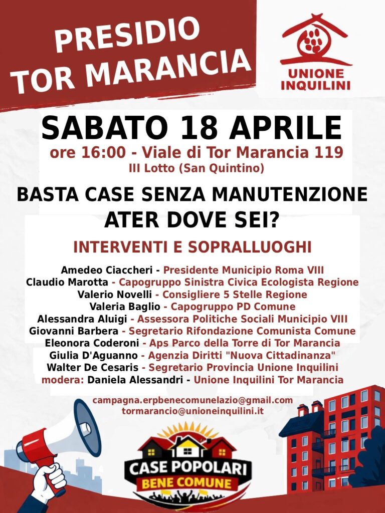 Proprio l’Unione Inquilini ha organizzato per il pomeriggio di sabato 18 aprile un presidio in viale di Tor Marancia 119. Una mobilitazione che punta a riportare al centro il diritto a vivere in condizioni dignitose.