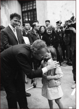 Il sollievo con cui sono state accolte queste parole, dai numerosi partecipanti alla piccola manifestazione, si è tramutato in una vera e propria festa, applausi, cori di ringraziamento dei bambini, a dimostrazione di quanto fosse sentito il problema di un eventuale sfratto. L’accoglienza riservata al primo cittadino, caratterizzata dal clima festoso dell’evento; salutato dai cori dei più piccoli sul tema della multietnicità, fino ad intonare, i più grandi, canzoni come “Immagine” e “C’era un ragazzo” accolta quest’ultima con la partecipazione del Sindaco stesso al coro. Entusiasmo e gioia, come si conviene ad una festa riuscita, la lettura delle lettere scritte dai bambini all’indirizzo del Sindaco hanno completato il momento. Grandi sono, in ogni modo, le attese per il futuro della scuola Alonzi corroborate dalle assicurazioni del Sindaco, e dalle dichiarazioni dell’assessore al patrimonio Claudio Minelli “le trattative ripartono ora da una valutazione che sarà fatta da noi e dall’Ipost”.