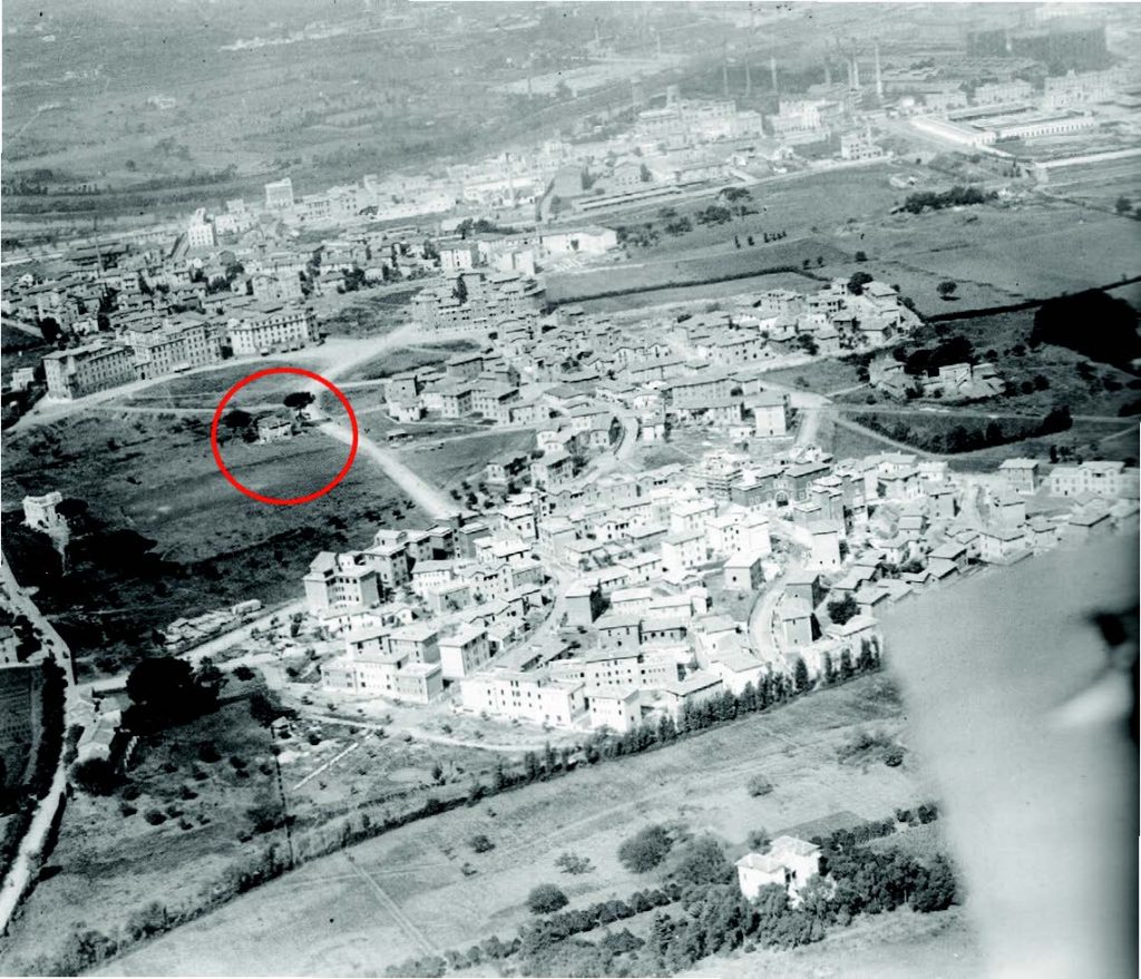 Foto aerea della Garbatella, 1926. All’interno del cerchio rosso