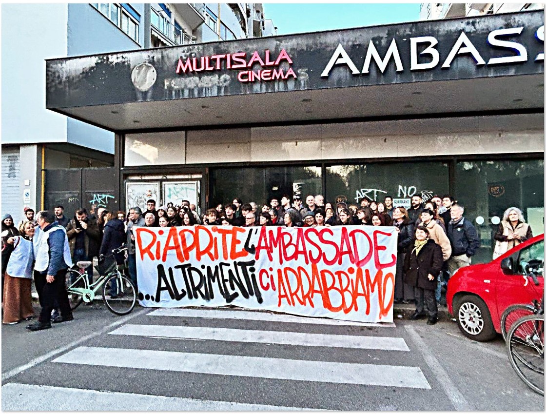 È da cinque anni che i proiettori del cinema Ambassade sono spenti, ed è da qualche mese che i residenti della Montagnola si sono mobilitati per chiederne la riaccensione. Alla campagna condotta dal Comitato di Quartiere, culminata con una petizione che in poche settimane ha raggiunto il risultato lampo di oltre quattromila firme, si è recentemente aggiunta la proposta del gruppo Progetto Ambassade. Si tratta di un movimento di giovani il cui zoccolo duro è costituito da studenti delle Università Roma Tre e Sapienza. Nelle due assemblee pubbliche che si sono tenute a marzo e maggio, una sessantina di partecipanti si è riunita per stilare una lista di obiettivi ispirati alla seguente premessa: “è stato subito chiaro che la chiusura del cinema potrebbe rappresentare un nuovo inizio per riprogettarne gli spazi a servizio del quartiere” – come si legge in un loro comunicato.
