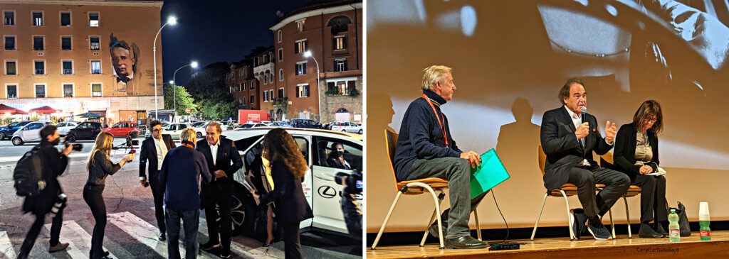 L’ultima volta che partecipò al Festival del cinema di Roma era il 2016, dove presentò il film Snowden. Per il suo ritorno, sono tanti gli spettatori accorsi al Palladium, per il dibattito e la proiezione di JFK Revisited: Through the Looking Glass, una pellicola che analizza i nuovi documenti recentemente desegretati sull’omicidio del presidente John Fitzerald Kennedy, che mettono ordine su alcune questioni rimaste in sospeso nel precedente film di Stone JFK: Un caso ancora aperto del 1991.