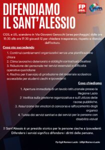 Nonostante la pioggia, decine di persone si sono radunate ieri pomeriggio davanti al palazzo della Regione Lazio per denunciare le difficoltà che stanno attraversando i servizi dell’Istituto regionale dei ciechi e ipovedenti Sant’Alessio – Margherita di Savoia, storica istituzione dedicata alle persone con disabilità visiva.