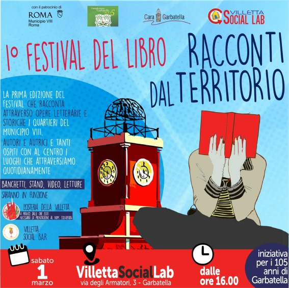 Cara Garbatella e Villetta Social Lab con il patrocinio del Municipio Roma VIII SABATO 1° MARZO dalle ore 16:00 presso La Villetta (via degli Armatori 3) presentano la 1ª edizione del FESTIVAL DEL LIBRO – RACCONTI DAL TERRITORIO per scoprire e approfondire alcuni testi ambientati o che raccontano la storia di questo lembo di terra … Leggi tutto
